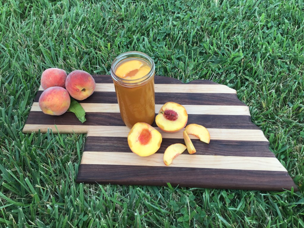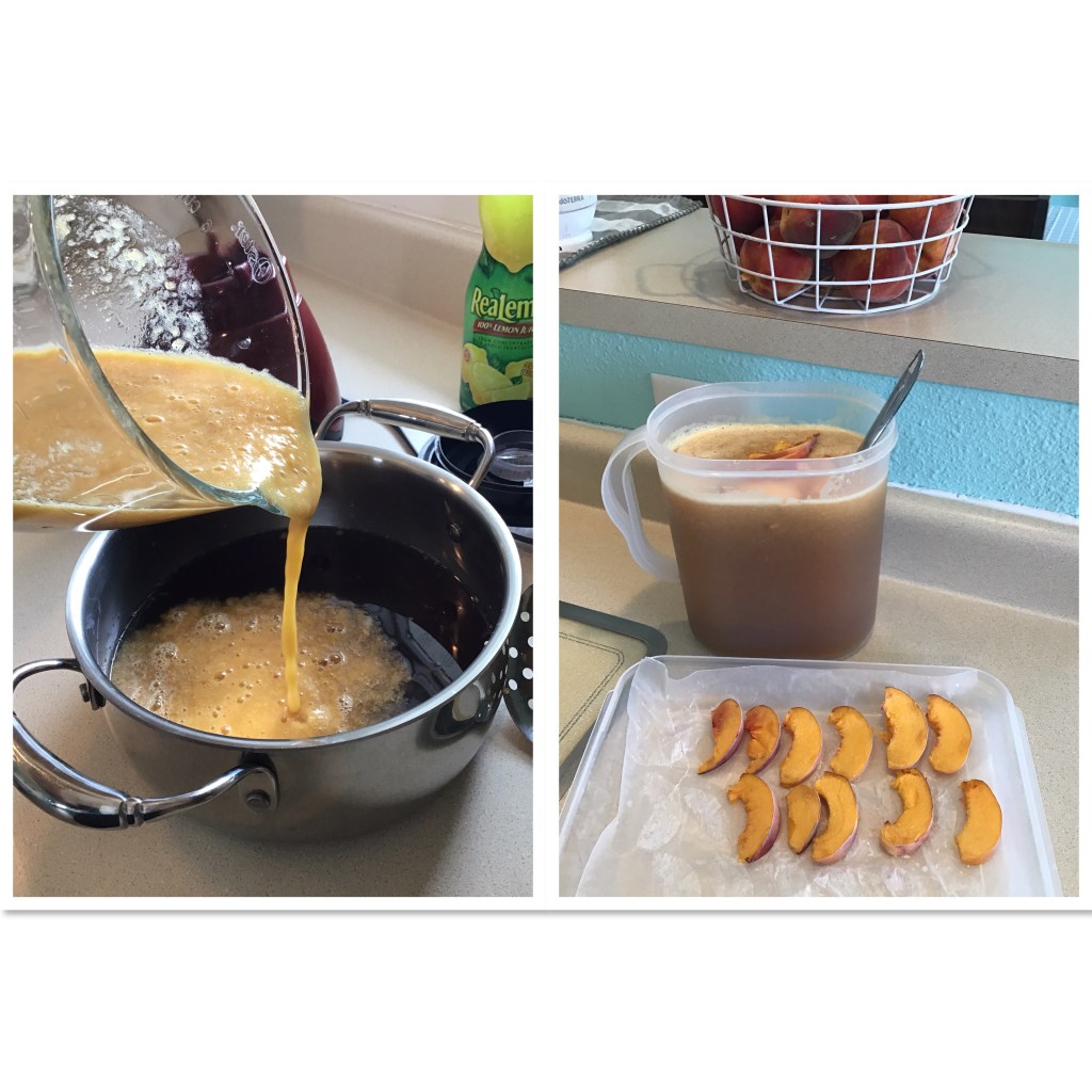 *Halve and slice two unpeeled peaches, laying on parchment paper lined pan. Freeze overnight or at least four hours.
