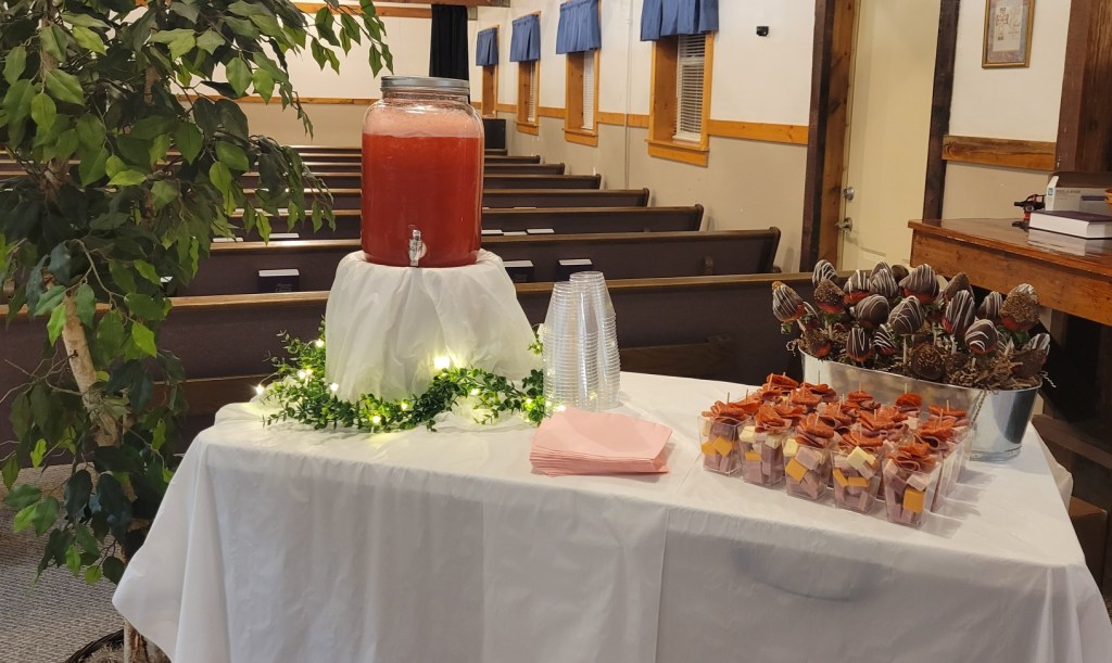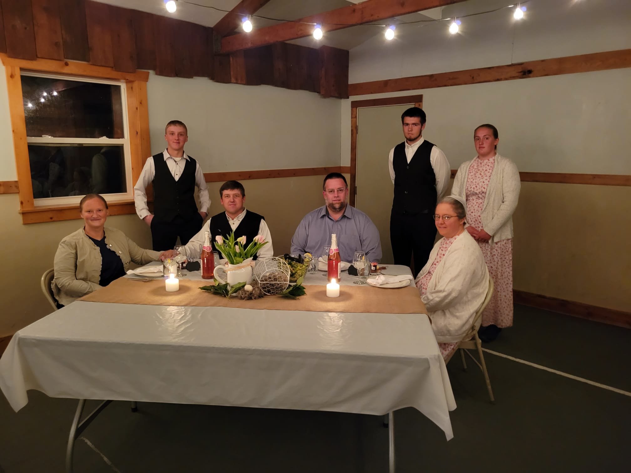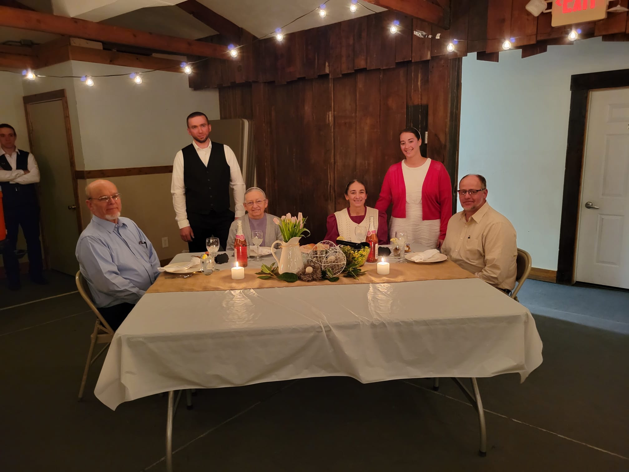 After an opening and prayer, the youth filed through to fix their parent’s plates. They were to keep tabs on their drinks or anything they needed all evening. Except for dessert we had self serve so they could pick and choose from the variety.
