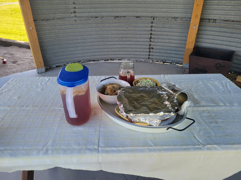 Here’s the method I use: First off, just cook whatever you have on your menu. You don’t have to grill or have picnic foods. A casserole or pan of pizza is fine and often more simple than grilled hot dogs or hamburgers with all the toppings.
