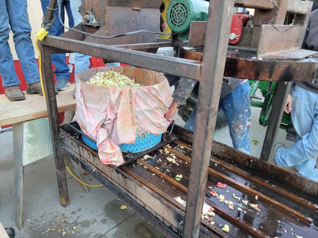 So back to the recipe (or lack of)- we all bring apples of all shapes, colors, and varieties and they inadvertently get mixed as they are quartered and ran through the chopper and press. The resulting cider can be summed up in one word- luscious!