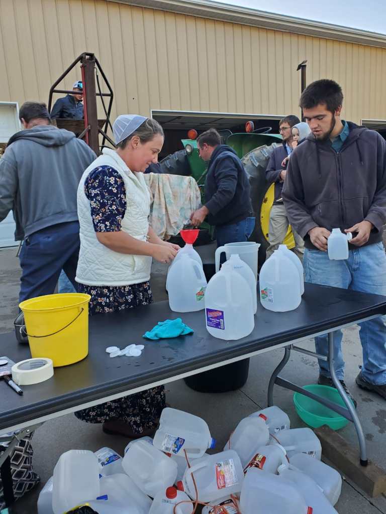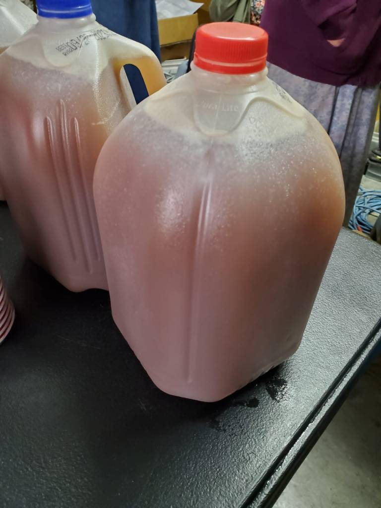 I started out filling jugs, but then actually spent the evening simply organizing everybody’s jugs, while two other ladies filled them. It kept me hopping for sure! I found out the amount each family wanted, unlidded (is that a word?!) their jugs, and kept their jugs separate from the next person’s. Also wiped down the jugs and capped them. As soon as one person’s were filled, I marked down their amount of gallons, and told that person their jugs were ready to be hauled out to their vehicle, so as not to get confused with the next person’s. Most everybody brings their own used jugs, so there is one grand conglomeration of jugs to be filled and kept straight. I absolutely love to organize, so I was in my element doing my job!