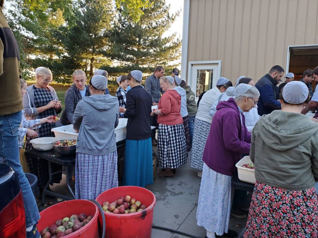 Last Friday night our church did just that. We got together for a big evening of pressing apples. There were truckloads and many buckets filled with apples! The weather was crisp and clear, making it perfect for the event!