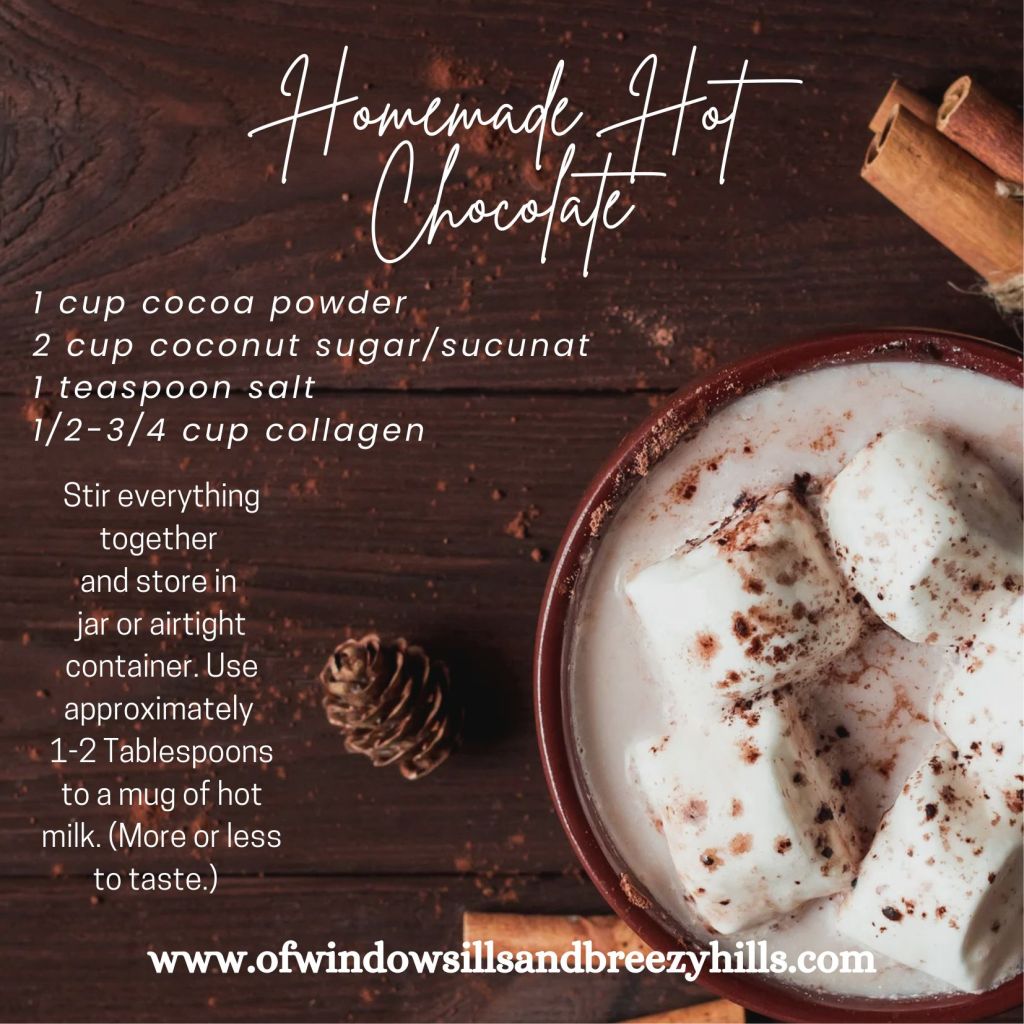 This hot chocolate recipe is one I found out of Keeper’s At Home magazine Fall 2024. Although the lady that shared it said she liked adding water and vanilla yet and cooking it into a syrup. I prefer the dry mix, so that’s how I chose to make it.