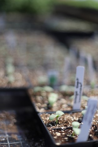 Our cabbage, broccoli and cauliflower we start the seeds in the 4 pack containers that we eventually sell them in. Some seeds need to be lightly covered with soil and others need to simply be pushed into the dirt a bit and left uncovered. Most seed packets give instructions on the back for if seeds need to be covered or not. Once the seeding is done, we mist the dirt and try to get it evenly moist and then cover the trays with a clear plastic lid to help keep the moisture inside. You donât want your soil too wet for too long, but neither do you want things drying out too much. Once most of the seeds have sprouted, we remove the clear lid.