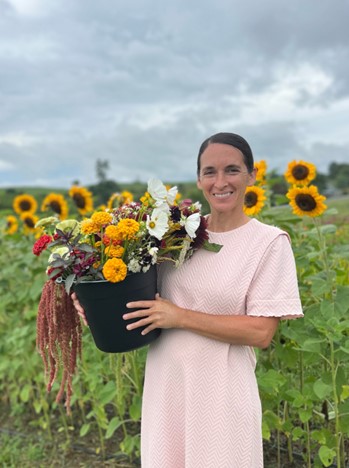 I mentioned earlier that all our flowers we get shipped in as plugs. However, I do start flower seeds in trays for our upick flower field. Carnations, rudbeckia, gomphrena, amaranth, are some of what I started in the greenhouse. Some seeds I direct seeded in the flower field once danger of frost was past. Oh the rewards of seeing the flowers grow and beautiful bouquets being made throughout the summer!! I had never before been able to just go cut as many flowers as I wanted to, making bouquet after bouquet!