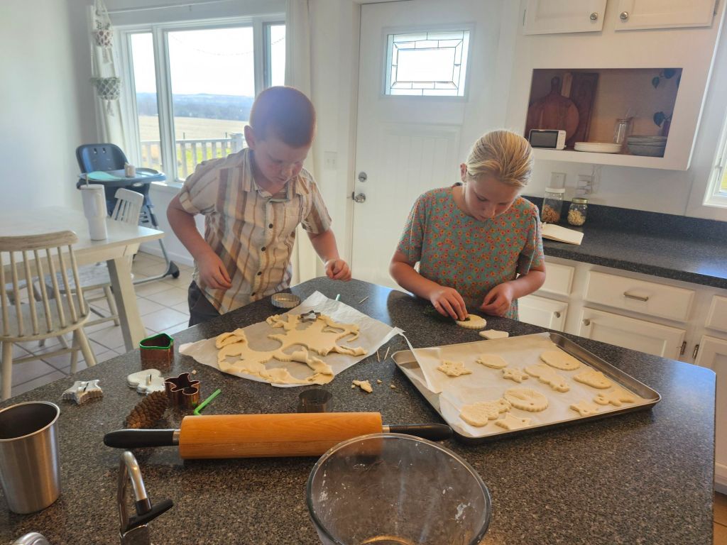 Over Thanksgiving vacation, the children and I made the old fashioned cinnamon applesauce ornaments/cutouts as well as some salt dough ones. I had never made either one, although the salt dough ones are much like play dough except you then bake the shapes. Thanks to my friend Grace for recently sharing a recipe….