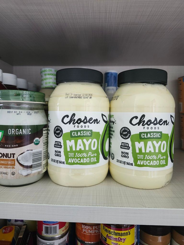 Mayonnaise: Most mayonnaise is full of soybean oil! It might boast ‘made with cage free eggs’ or ‘made with olive oil’. But look closely. Even if its made with olive oil, its usually only partly! And what’s great about cage free eggs if it’s full of seed oil?! I love the Chosen avocodo oil mayonnaise or you can make your own. At times I have trouble with it not wanting to emulsify properly. I could never figure out why. Now I try to drizzle the oil in very slowly instead of having everything in the jar and then blending. But I’ve given in to the convenience of having mayonnaise in my pantry. I’ve found Costco carries it for the best price.