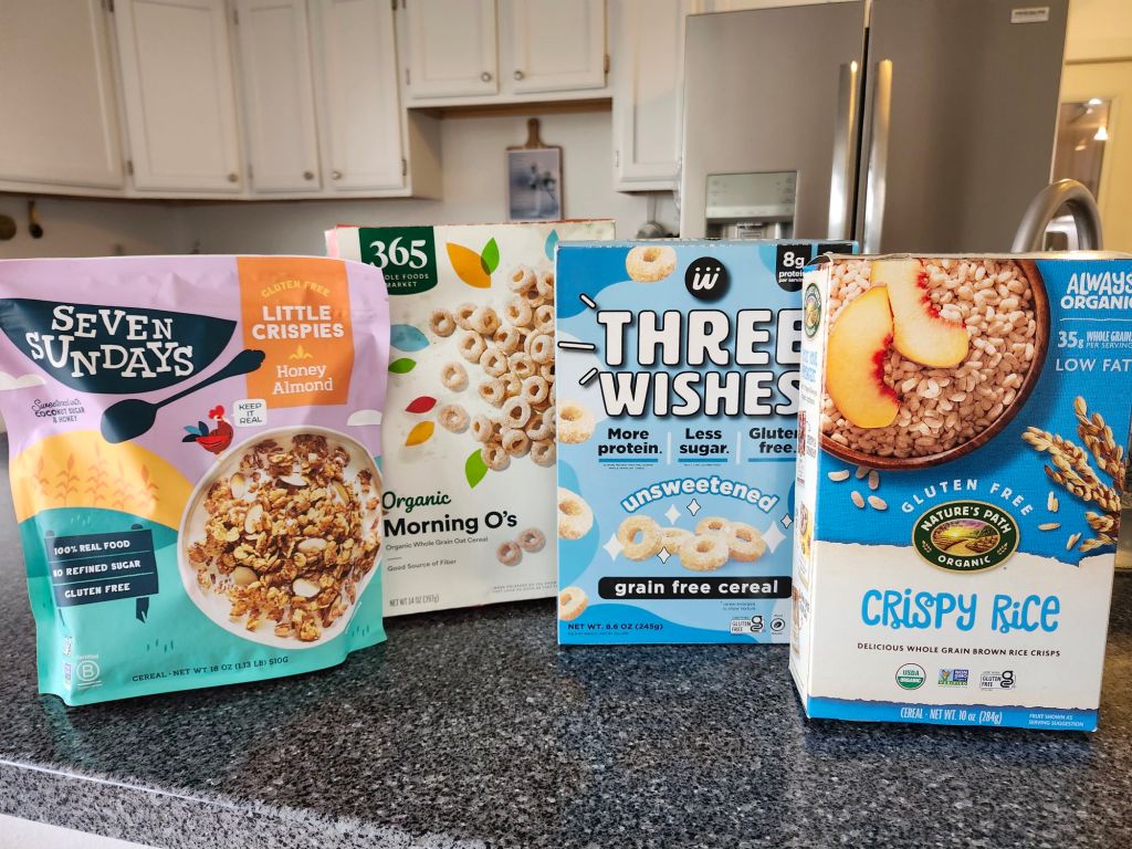 Cereal: I keep homemade granola on hand but otherwise, not too much. Most cereal is full of sugar with little nutrients. I like to keep rice krispies on hand for use in baking and cheerios for toddler snacks. Here’s better options that I started using. Organic Morning O’s, Nature’s Path Crispy Rice and Three Wishes. Seven Sundays is a good brand too. Three Wishes cereal is made with chickpeas and very few ingredients.