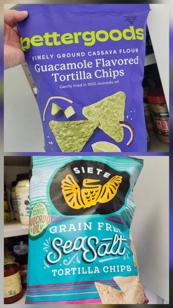 Chips: We try to eat chips sparingly and find healthier options. This is a harder one to find without seed oils. We like Bettergoods brand guacamole flavored chips fried with avocado oil. The grain free tortilla chips are made with very clean ingredients. Costco carries a variety of chips made with avocado oil as well as Thrive Market. Learn to read labels. Just because it looks healthy or says all natural doesn’t mean it always is. Simply Nature has organic chips that are made with sunflower oil, which is still a seed oil.