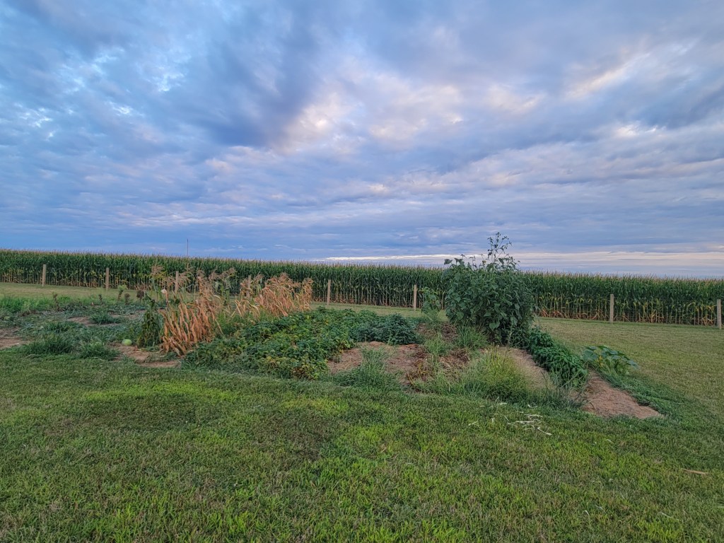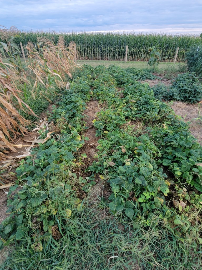 As far as I know we have a good crop of potatoes because we haven’t dug them yet. The sweet potatoes look green and viney so I have my hopes up about them too.
